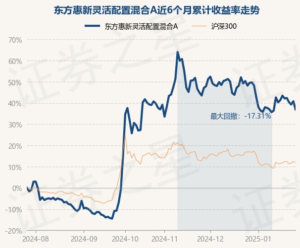 本站消息,1月27日,东方惠新灵活配置混合A最新单位净值为0.9478元,累计净值为1.178元,较前一交易日下跌2.76%。历史数据显示该基金近1个月下跌8.52%,近3个月下跌2.7%,近6个月上涨36.95%,近1年上涨55.12%。该基金近6个月的累计收益率走势如下图: